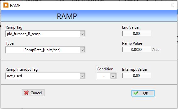 With a RAMP command all setpoint scan be ramped either by defining a ramp time, or a ramp rate.